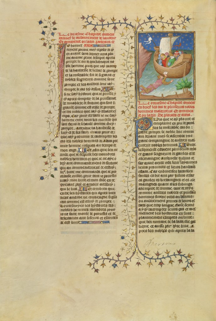 Here’s a 15th century image from the Getty of Caesar saving what a three-drink dinner encourages me to regard as a new possibility equally supported by the primary sources – a cocktail menu.